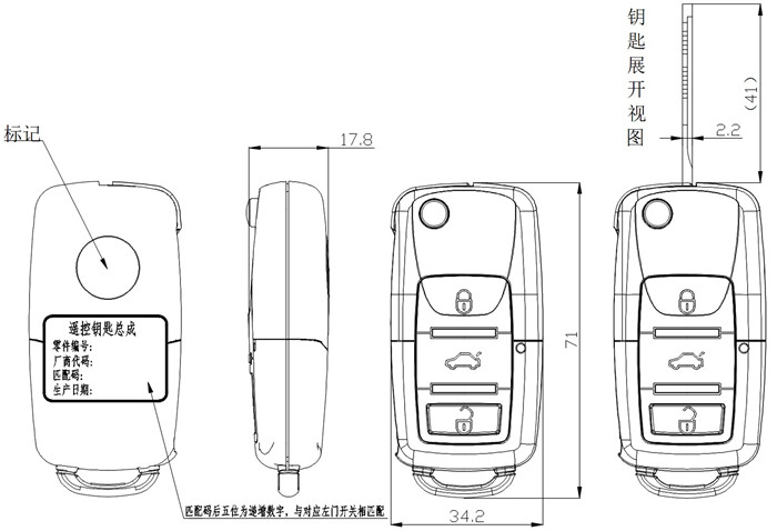 2、闭锁/解锁/后备箱开启按钮循环60000次;