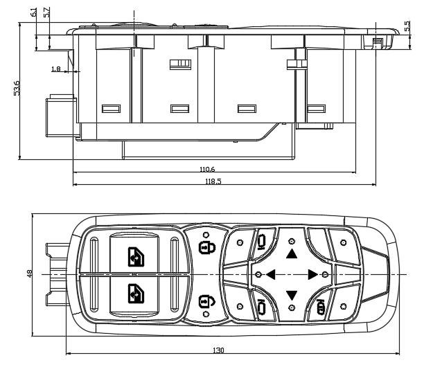 L.后视镜选择及加热按键导通行程:1.8mm;