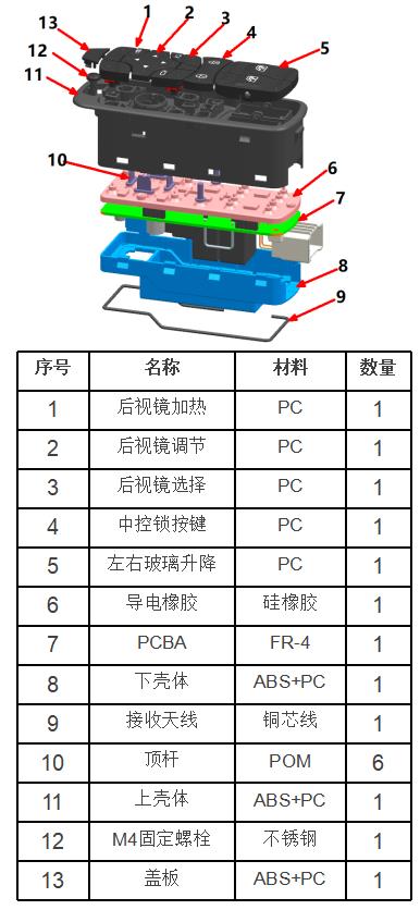 K.玻璃升降按键行程:±12°,中控锁及后视镜调节按键行程: ± 8°;