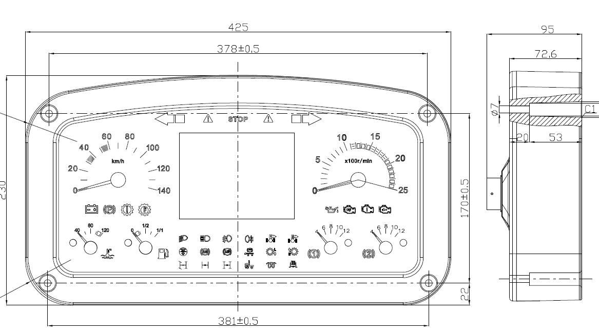 8.仪表后部航空接插件型号为:XCHBII30F30Z1D1;