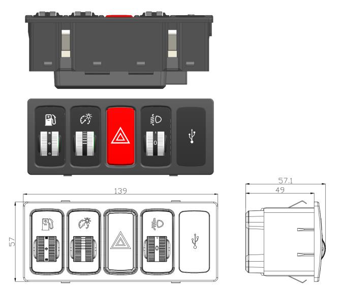 L.仪表背光调节开关:无级调档,角度范围:185°